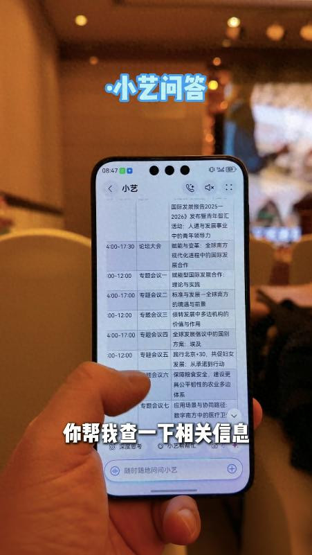 在视频里,濒临复杂的会议议程和分量级嘉宾,大攀莫得让新东谈主死记硬背,而是让她告成招呼手机里的“超能助理”——小艺,居然AI援助咱们这些打工东谈主。假想一下,当你拿到一份全是英文、波及“东谈主谈意见维持”“荒疏变化”等专科界限的嘉宾名单时,芜俚东谈主可能需要花几个小时去搜索整理考虑信息。但在 HarmonyOS 6 加持下,小艺能一霎化身你的私东谈主征询员。不管是快速合手取会议布景、到场嘉宾信息,也曾确认嘉宾身份“深度征询”并生成一份逻辑严实的采访提纲,险些皆是一句话的事儿。